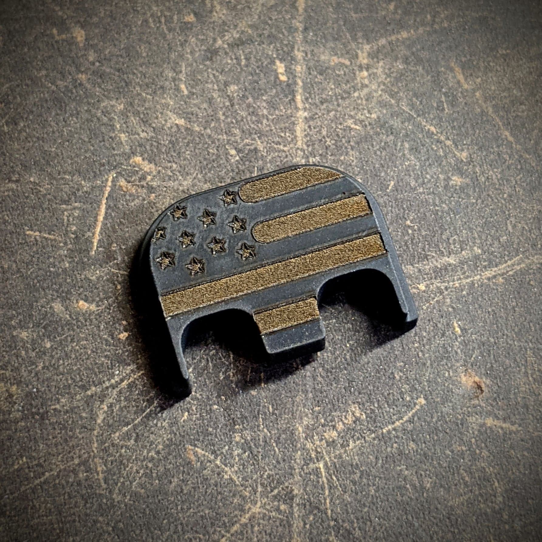 American flag Glock backplates, titanium, brass, copper, steel, black, glock 19, glock 17