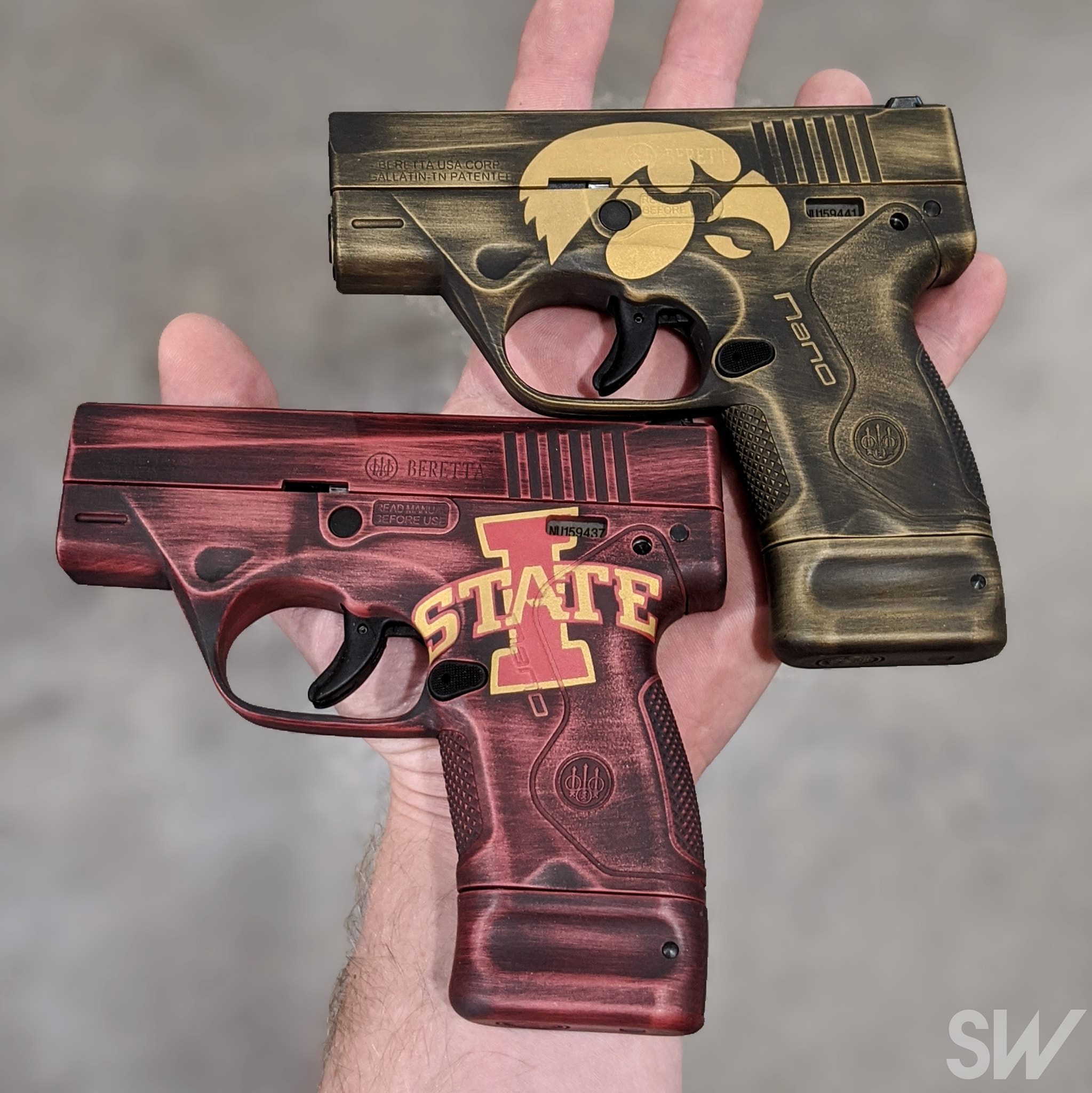 iowa, iowa state cerakote, beretta nano, red cerakote, gold cerakote, battleworn