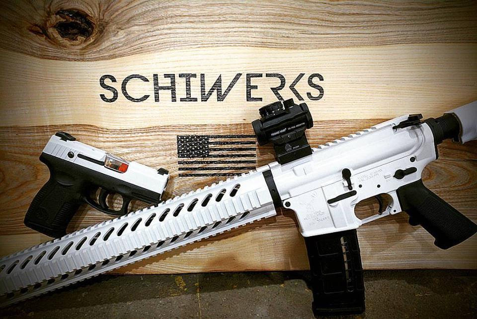 White pistol and AR