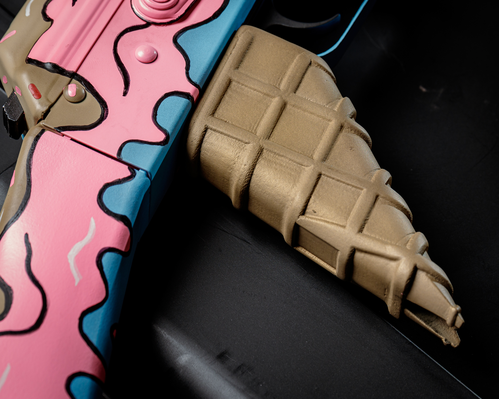 a firearm grip designed to look like a waffle ice cream cone